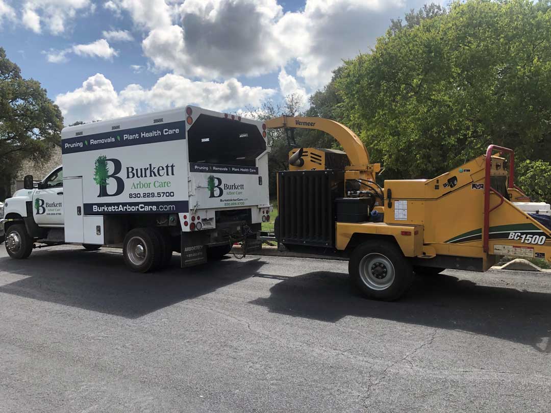 The Burkett’s current fleet includes a plethora of new and pre-owned Vermeer brush chippers, a Vermeer SC362 stump cutter (tree grinder) and a Vermeer CTX100 mini skid steer. Tyler remarked, “90 percent of my fleet is Vermeer. I was just used to Vermeer from renting chippers from them.”